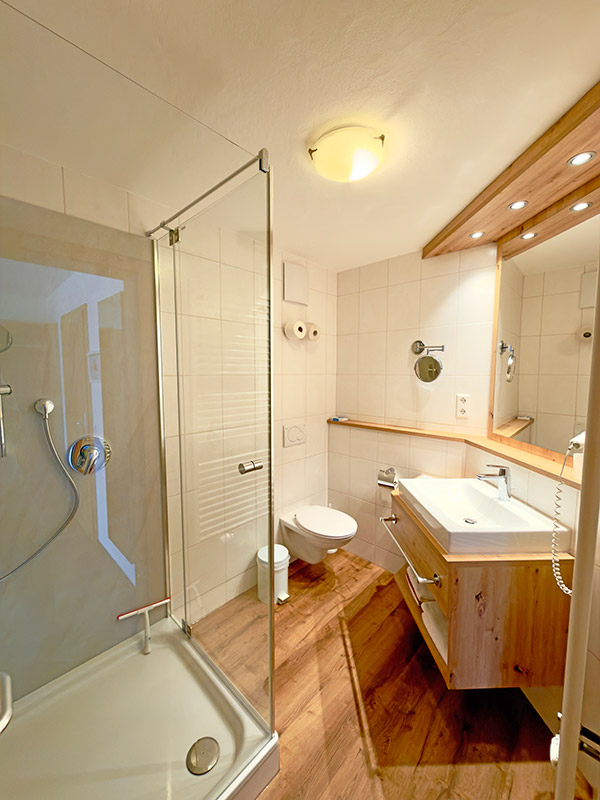 | Komfort-Doppelzimmer mit Balkon / Comfort double room with balcony mit Balkon Südseite, Dusche/WC, Föhn, TV, Kühlschrank, Wasserkocher, Frühstücksbuffet |