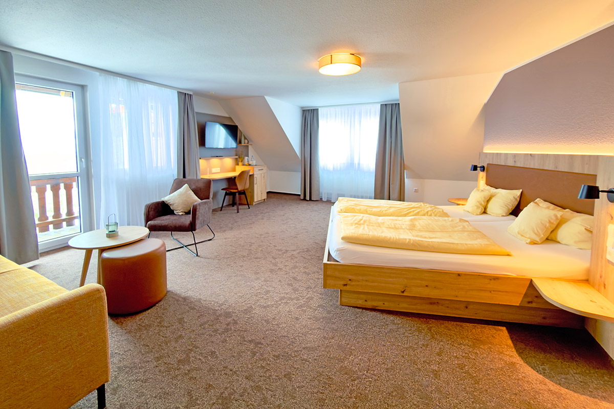 Erleben Sie ein atemberaubendes Schwarzwald-Panorama und unvergessliche Sonnenuntergänge – direkt vom Balkon oder der Terrasse Ihres Zimmers aus. Wenn die Abendsonne die Hügel in warmes Licht taucht und die Natur zur Ruhe kommt, beginnt Ihr ganz persönlicher Wohlfühlmoment.